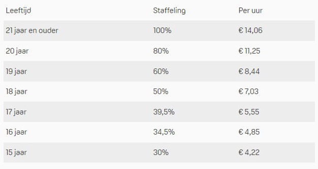 Sinds 1 januari 2024 is er sprake van een wettelijk minimum uurloon. Dit houdt in dat er sindsdien sprake is van een vast minimum (jeugd)uurloon. Het wettelijk minimum(jeugd)loon per 1 januari 2025 is: