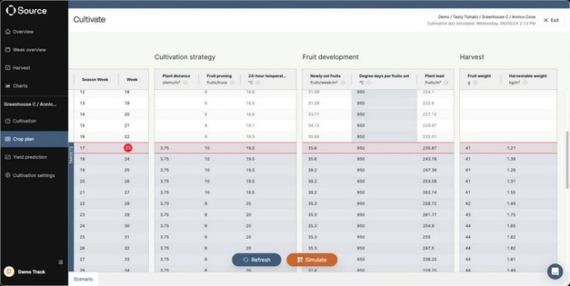 "Negen van de tien keer gaat zo'n voorspelling drie à vier weken vooruit wel redelijk goed, maar een paar keer per jaar zit de teler er met zijn voorspelling echt naast. Daar verliezen telers dan veel geld, en kunnen wij met AI-oogstvoorspelling de teler echt goed ondersteunen." Source.ag ontwikkelde hiervoor het product Source Cultivate.