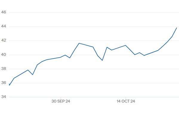 Met aanhoudend slechts beperkte windkracht blijft er gas nodig om elektriciteit op te wekken, zelfs nu de temperaturen mild zijn voor de tijd van het jaar. Vanaf komend weekend nemen de temperaturen wel een beetje af. Ondertussen is de TTF-gasprijs aan het stijgen en schurkt de prijs maandagochtend tegen de 43 euro per megawattuur aan voor komende winter.