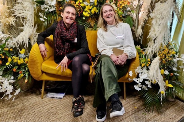 Marie Legendre en Brigitte Hagen op Florevent bloemistenbeurs in Bordeaux