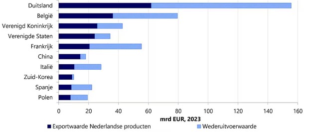 Figuur 1: De VS staat op de vierde plek als exportmarkt van Nederlandse goederen