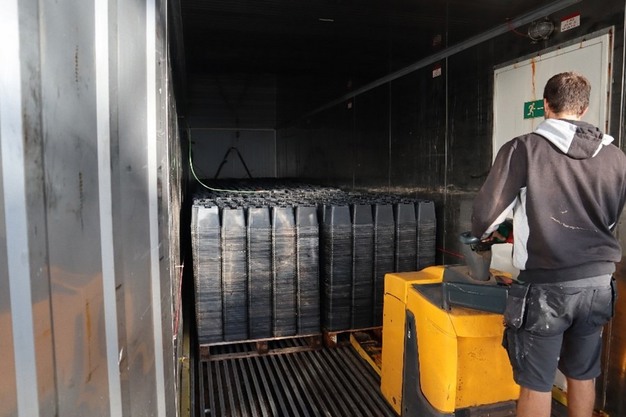 De maximumcapaciteit van één Agro-Pure is 32 pallets per dag. De snelle rekenaar begrijpt dat, anders dan bij de Plantsauna van eveneens Moleda, de behandelingstijd wel langer is. "Een behandeling duurt 10 tot 12 uur. We hebben ervoor gekozen om het vermogen van de stoomketels beperkt te houden. Een hogere capaciteit is niet nodig, zeker niet als je bedenkt dat telers nu vaak afhankelijk zijn van een externe partij die af en toe langskomt. Met de Agro-Pure kunnen telers zelf het moment kiezen waarop ze stomen, en hoeven stapels met trays bijvoorbeeld niet tijden te wachten."