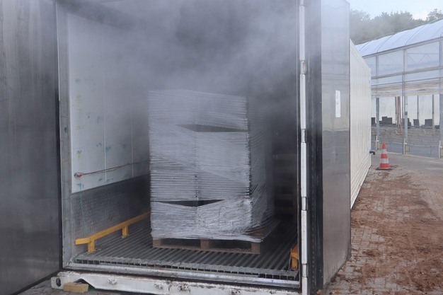 Tholen - Karren, kratten, machines, trays en potten. Het zijn veel gebruikte materialen in de tuinbouw die schoon moeten zijn. Daarvoor wordt stoom gebruik. Maar in plaats van het nog veel gebruikte zeilstomen, is er ook een techniek waarbij het stomen plaatsvindt in een geïsoleerde zeecontainer. "Onze Agro-Pure is zuiniger en preciezer, en hierdoor kosteneffectiever", aldus Kars Vreeswijk van leverancier Moleda.
