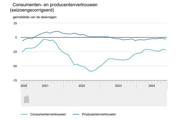Consumenten en producenten waren in oktober negatiever dan in september. Consumenten- en producentenvertrouwen lagen onder het gemiddelde van de afgelopen twintig jaar.