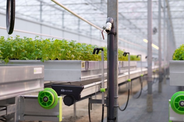 KG heeft daar iets op gevonden. In de afgelopen vijf jaar hebben ze een ontwikkeling gedaan waarbij het mogelijk is om sla, kruiden en baby-gewassen te kweken op een mobiel kweektafelsysteem, zonder dat er water in hoeft te blijven staan dat eroverheen kan klotsen of de elektronica kan verstoren. Matthias Haakman van KG vertelt ons meer over dit concept.