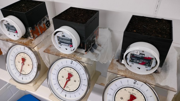 5. Het verloop van interen en massa-afname wordt simultaan in meerdere opstellingen gemeten.