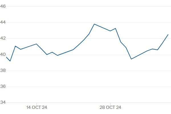 De TTF-gasprijs is vorige week aanhoudend gestegen. Maandagochtend liggen de contractprijzen hierdoor op 43 euro per megawattuur voor komende winter.