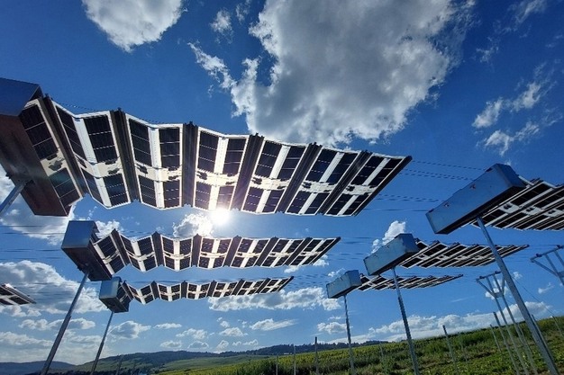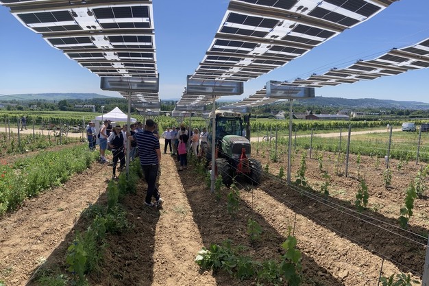 VitiCult project in Geisemheim, Duitsland, met gebruik van Mirai Solar's fotovoltaïsche zonweringssysteem. Klik hier voor meer informatie.