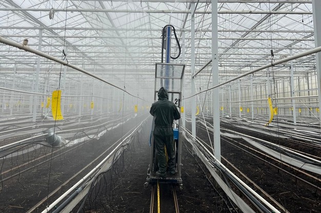 Glas reinigen is volop aan de gang. Het is immers de tijd van de teeltwisseling, waarin veel kassen even leeg staan. Roger De Jagher van Royal Brinkman deelt een foto waarbij het kasdek van binnenuit schoon gespoten wordt met Greenhouse Glass Cleaner. Het product is volledig bio, laat hij weten. Bovendien kan het product ook ingezet worden voor diffuus glas.
