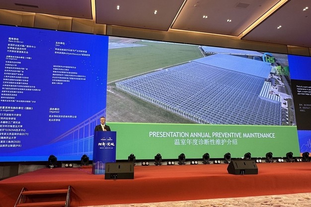 HS Tuinbouw Service kreeg op het evenement in Lanzhou de kans te vertellen over het belang van preventief jaarlijks onderhoud aan kassen. John legt uit waarom het Westlandse bedrijf de stap naar China zet. "We zijn de koploper in de groeiende markt daar. Onze teams met specialisten zijn wereldwijd inzetbaar. Er is een steeds groter wordende vraag naar specialisten op het gebied van kasonderhoud."