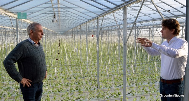 Journalist Onno Havermans van dagblad Trouw bezocht op uitnodiging van Glastuinbouw Nederland een kas in 2022. Hier is hij op bezoek bij paprikateler Hans van der Waal, waar hij werd bijgepraat door de ondernemer zelf en een drietal specialisten.