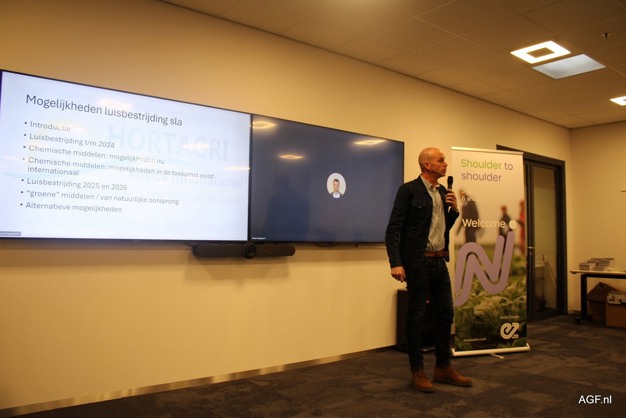Over de inzet van groene middelen was Maarten de Korte van Koppert uitgenodigd. Het bedrijf is al jaren actief met biologische bestrijders in de tuinbouw, maar is sinds zeven jaar ook gestart in de akkerbouw. De veldonderzoeker gaf een toelichting op het veldonderzoek op twee percelen met vier velden, waarbij de effectiviteit van biologie duidelijk werd aangetoond met de laagste luisdruk. Op de vraag vanuit de zaal wat de biologische bestrijders gaan kosten, was Maarten duidelijk: "Dat weet ik niet en we zitten ook nog niet op dat punt. Eerst moet er veel meer onderzoek gedaan worden naar de werking. We zijn er nog niet."
