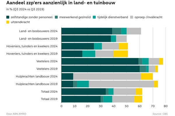 Binnen de agrarische sector wordt de handhaving op schijnzelfstandigheid relevant. Werkgevers lopen het risico dat de zelfstandigen zonder personeel (zzp'ers) waarmee ze werken juridisch gezien een arbeidsovereenkomst hebben, wat kan leiden tot naheffingen en boetes.