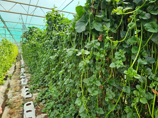 Er werd begonnen met baby leaf, cressen en spinazie – een bijzondere soort, namelijk Malabar spinazie, waarvan de plant omhoog kruipt en twee meter kan worden –, maar ondertussen vind je in de kas van wat Bon Tera Bonaire werd gedoopt ook watermeloenen, (snack)komkommers, de typische Surinaamse groente kousenband, cherrytomaten – dit product alleen in de koelere maanden, net na de regentijd – en kruiden zoals basilicum en munt. Het cressenaanbod bestaat uit rode en groene radijs, zonnebloem en erwt.