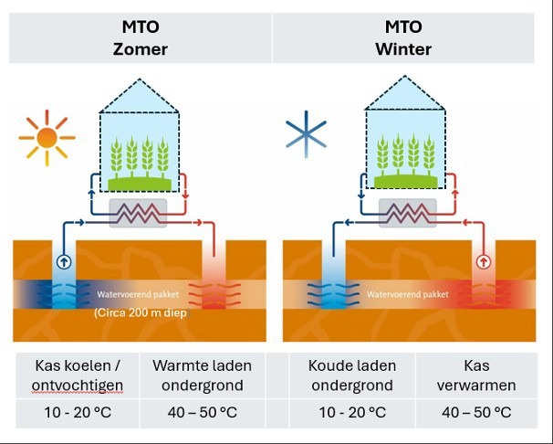 De ondergrond van Zuid-Holland is goed geschikt voor deze techniek. MTO kan daarbij voor bijvoorbeeld de glastuinbouw een aanvullende techniek zijn voor de energiehuishouding, naast bijvoorbeeld geothermie en restwarmte. Deze warmtebronnen zijn minder goed regelbaar over de seizoenen en kunnen juist met de inzet van MTO ook effectiever hun vermogen leveren. Bovendien is MTO efficiënter dan WKO.