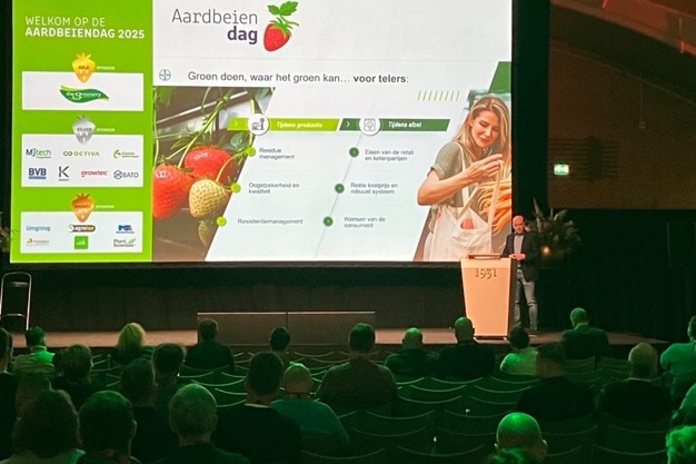 "De vergroeningsstrategie in aardbeien is al een tijd geleden ingezet. Er zijn daar de afgelopen jaren flinke stappen gemaakt om ziekten en plagen op een duurzamere manier aan te pakken. Of het nu gaat om rassen, teeltmethoden, bemesting of gewasbescherming, de aardbeienteelt is toekomstbestendig," vertelde Stefan van Heist, Crop Advisor Vollegrondsgroenten en Aardbeien bij Bayer op de Aardbeiendag. "Op het gebied van gewasbescherming hebben we de afgelopen jaren hier flink aan de weg getimmerd om te laten zien dat groene middelen, met de juiste inzet hiervan, het totale ziekten- en plagencomplex kunnen beheersen."