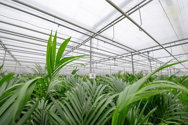 TGI, The Green Innovator, staat er achter de naam van Ammerlaan. De potplantenkwekerij van de broers Menno en Leon Ammerlaan in Pijnacker dankt die naam niet alleen aan de installatie van een eigen aardwarmteput. Ook in het assortiment is Ammerlaan innovatief. Op het zes hectare grote bedrijf staan zo'n honderd verschillende soorten planten. De planten groeien deels onder een nieuw schermdoek van Ridder, het RES 20 D FR. Het doek maakt het licht extra diffuus door de uniek hoge hortiscatter van 82%, iets wat vooral in hoog opgaande teelten telt. En het heeft nóg een pluspunt: een uitstekende vochtafvoer.