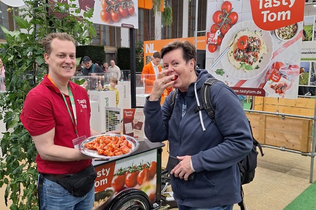 Ine van Kleef, marketingmanager van Tasty Tom, legt uit waarom het merk aanwezig is op de Grüne Woche: "We willen bezoekers graag het verhaal achter onze Tasty Tom-tomaten laten beleven. Met een opvallende fietskar en echte tomatenplanten in onze stand brengen we de passie en zorg die in onze tomaten zit, tot leven. Het Holland Paviljoen, georganiseerd door Nederlandse exportorganisaties, biedt ons een unieke kans om de bekendheid van Tasty Tom verder te vergroten en nieuwe consumenten kennis te laten maken met onze onderscheidende, volle smaak."
