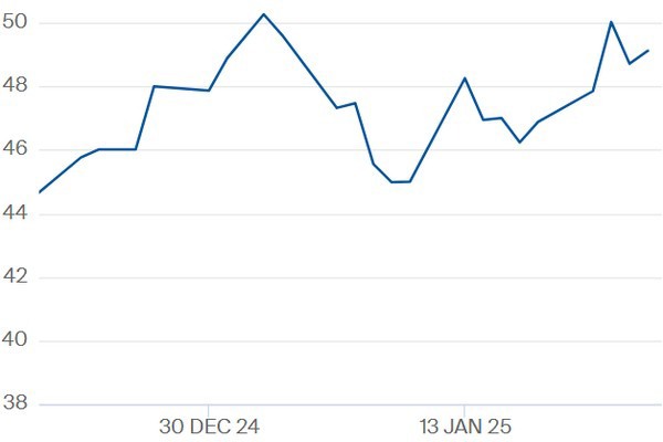 De TTF-gasprijs is in trapjes toch weer aan het stijgen gegaan deze week. Het houdt de gasprijs vrijdagochtend dicht bij de 50 eurogrens. Een staartje storm vanuit Ierland drukt hier vandaag de stroomprijs iets omlaag, al is 79 euro zeker nog geen bijzonder lage dagprijs.