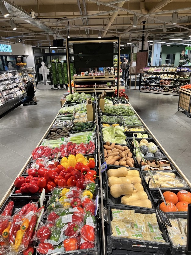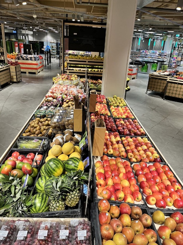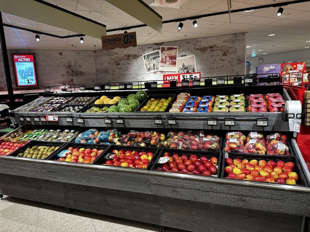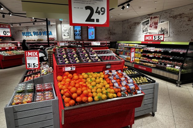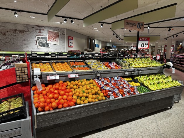 Een van de meest opvallende veranderingen bij Hoogvliet Leyweg is de nieuwe ingang: klanten stappen nu direct de groente- en fruitafdeling binnen. Winkelbegeleider AGF Kees Blom deelde de foto's van de vernieuwde AGF-afdeling.