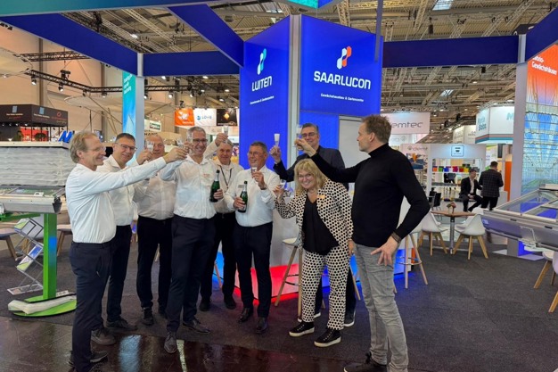 Op stand 3B31 in hal 3 zijn Luiten en Saarlucon weer van de partij. Hier is dinsdagochtend geproost met champagne, op de start van de beurs en onthulling van een nieuwe bedrijfsidentiteit.