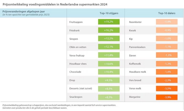 Figuur 1: Fruitsappen en frisdrank vorig jaar fors duurder geworden
