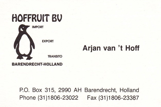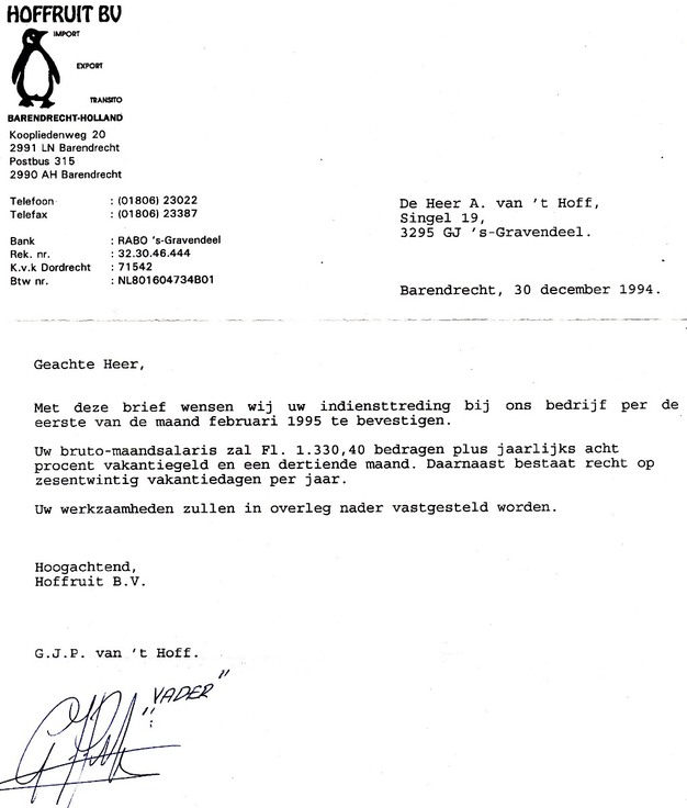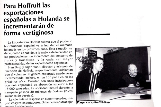 Hoewel Geert (pa) altijd zei: 'Léér een vak, ga vooral NIET in de groente en fruit', was het op 1 februari 1995 tóch zover, Arjan begint in het familiebedrijf, Hoffruit B.V.