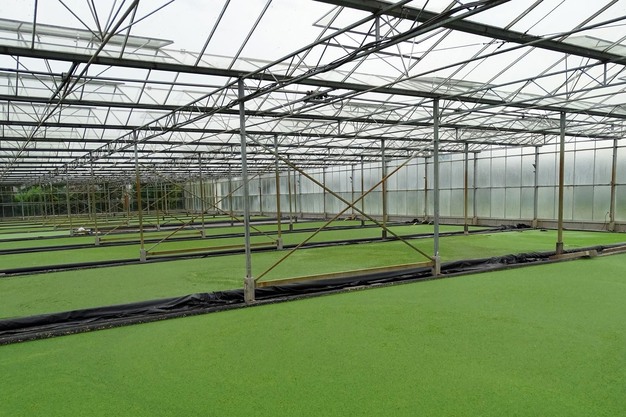 Onderzoekster Ingrid van der Meer in een kweekcel waarin waterlinzen worden gekweekt