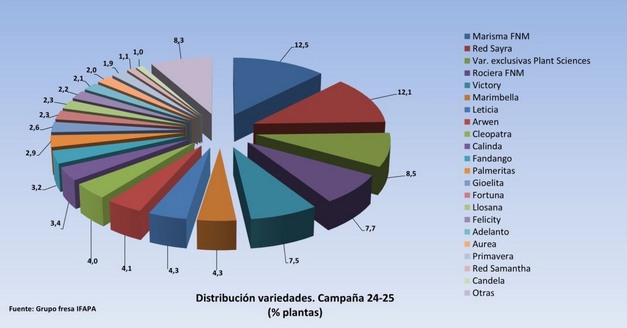 Volgens het Andalusische onderzoeksinstituut Ifapa zijn Marisma en Red Sayra dit seizoen de meest geteelde aardbeienrassen in de Zuid-Spaanse provincie Huelva, samen goed voor 24,6% van de teelt. Fortuna en Rociera, jarenlang dominant, verliezen geleidelijk terrein. In 2018/2019 besloegen deze nog 75,4% van de aanplant, maar hun aandeel is sindsdien flink afgenomen.