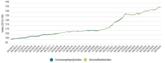 In maart is de consumptieprijsindex met 0,10 punt of met 0,07% gedaald tot 135,56 punten, tegenover 135,66 punten in februari (2013 = 100). De gezondheidsindex steeg in maart met 0,12 punt en bedraagt 135,91 punten tegenover 135,79 punten in februari. De afgevlakte gezondheidsindex bedraagt in maart 132,53 punten. De volgende spilindex voor het openbaar ambt en de sociale uitkeringen is vastgelegd op 133,28 punten.