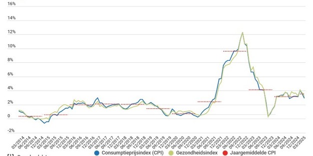De inflatie in maart bedraagt 2,91% tegenover 3,55% in februari en 4,08% in januari. De inflatie op basis van de gezondheidsindex bedraagt deze maand 3,16%, tegenover 3,70% in februari en 4,09% in januari. De inflatie zonder energieproducten bedraagt in maart 2,57% tegenover 2,29% in februari en 3,03% in januari. De kerninflatie, die geen rekening houdt met de prijsevolutie van de energieproducten en de onbewerkte voedingsmiddelen, bedraagt in maart 2,71% tegenover 3,10% in februari en 3,14% in januari.