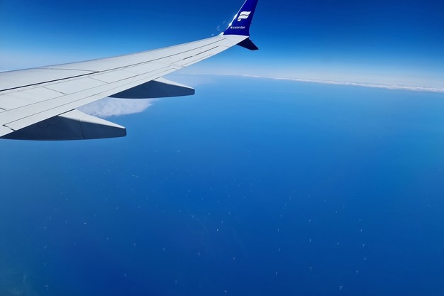 Windpark op zee, vanuit het vliegtuig uit IJsland.