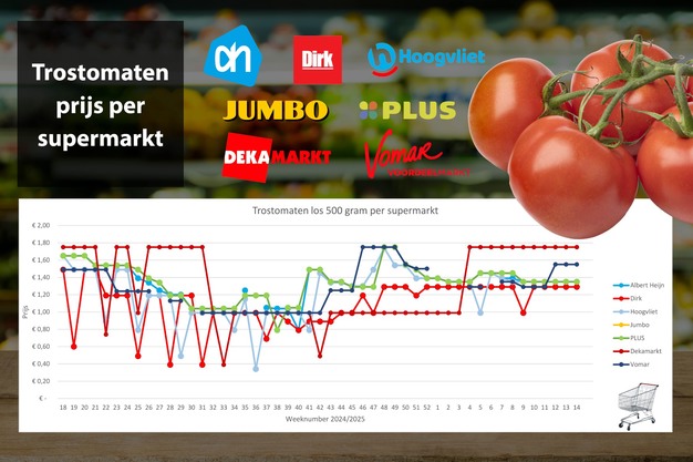 Ook stabiele prijzen voor trostomaten. De prijzen blijven op hetzelfde niveau en liggen nog altijd 10 tot 20 procent lager dan in dezelfde periode van 2024.