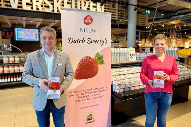 Dit jaar introduceert De Westlandse Aardbei een nieuw aardbeienras: Fandango. "Het nieuwe ras geeft mooie aardbeien, maar ze zien er wel anders uit dan de aardbeien die onder de Westlandse aardbeien verkocht worden. De kroon staat rechtop en de 'zaadjes' liggen niet op de vruchten, daarnaast hebben ze een ander 'huidje' en je krijgt een andere smaakbeleving," vertelt Sandra. "Daarom hebben wij ervoor gekozen om deze aardbeien anders te verpakken en ze een andere naam te geven. Omdat we sterk hechten aan transparantie en herkenbaarheid, krijgt dit ras een eigen merkidentiteit en verpakking. We brengen het onder de merknaam Dutch Sweety's op de markt."
