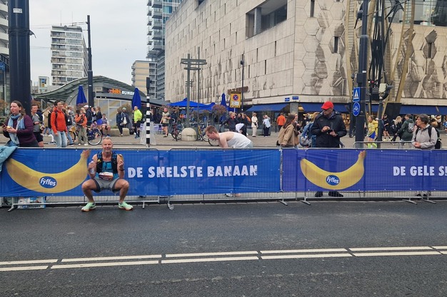 Jan Willem Tolhoek in actie bij de marathon van Rotterdam op 13 april jongstleden