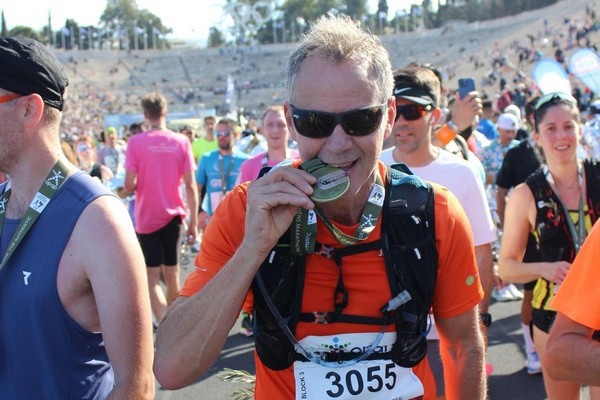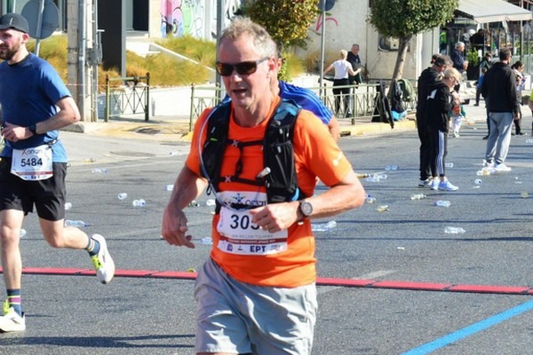 Jan Willem Tolhoek tijdens de marathon in Athene
