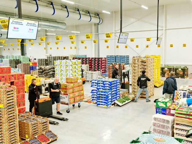 Afgelopen vrijdag werd de handel uit de oude locatie aan de Strijbroek, 1.200 meter verderop, al verhuisd naar de nieuwbouw. Zaterdag werd er veel verse handel gelost, zodat er gisterenochtend een breed assortiment op de klanten stond te wachten. "We hebben gekozen voor een stoer, industrieel en onderhoudsarm pand, met een andere look en feel dan we op onze andere vestigingen gewend waren", vertelt operationeel directeur Jasper van der Sandt.