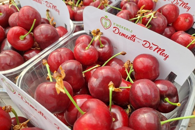 Tholen - Traditioneel gezien zijn een van de eerste Belgische kersen te verkrijgen bij kwekerij Demedts - De Mey. Ook dit jaar is dit niet anders nu teler Benoit Demedts sinds vorige week gestart is met de eerste Burlat kersen onder glas. "Er werd al veel naar gevraagd, dus dan is het mooi dat we weer van start kunnen. De zon heeft hierbij ook nog eens voor een zeer goede kwaliteit gezorgd", zo vertelt de kweker uit het Vlaamse Gits.