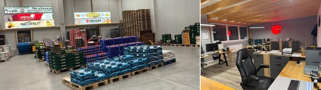 Een kijkje in de nieuwe bedrijfsruimten aan de groothandelsmarkt in Hilden. Het bedrijf beschikt nu over moderne standplaatsen (l) en kantoorruimten.