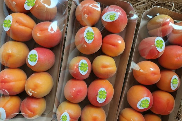 Naast de kersen is Amelinckx ook gestart met haar nieuwe abrikozen. "Deze hebben we vorige week voor het eerst geplukt. Ze zijn mooi uitgedund, waardoor elk abrikoosje dezelfde maat heeft, wat mooi presenteert in onze verpakkingen. We plukken ze op het moment dat ze nog stevig zijn, waardoor ze nog twee dagen aan kunnen rijpen op kamertemperatuur, waarna ze perfect zijn voor consumptie bij de klanten. Als je ze te rijp plukt, worden ze namelijk melig eer dat ze bij een consument zijn. Abrikozen worden hier meer en meer geteeld. Het is natuurlijk normaal gesproken een vrucht die uit het zuiden komt, maar hier kunnen we ze ook mooi telen tot ze zacht en teer zijn, wat perfect is, omdat er geen transport aan te pas komt. Het zijn geen massavolumes, maar het vindt toch goed haar weg naar de consument."