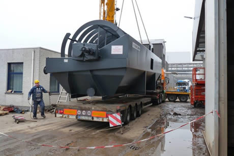 "De ideeën zijn gezamenlijk besproken en uiteindelijk is het Bucket Wheel door Barka Services geleverd en geplaatst. De voorfiltering voor het afscheiden van het organisch materiaal werd eveneens door Barka Services geleverd. De onderbouw, die zowat 11 ton weegt, (zie foto's) alsook het afbouwen van het dak van het gebouw, werd uitgevoerd door een Barka leverancier, firma Vandecappelle in Kortemark - België.