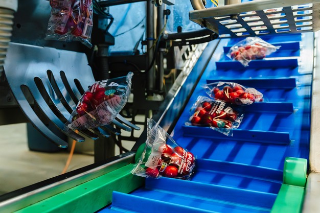 Mixbakjes met snackradijs op de verpakkingslijn bij Coolbergen. De teler investeerde de laatste jaren in nieuwe machines en wil ook volgend jaar weer een nieuwe machinelijn plaatsen.
