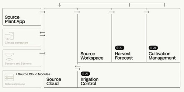 De stap die dit voorjaar is gezet, laat zich kort door de bocht omschrijven als het opknippen van een groot softwarepakket in verschillende stukken, met per onderdeel ook weer verbeteringen. De basis van alles is data. Dat stuk wordt nu afgedekt door Source Workspace. "Het is onze fundering voor de teler voor alles wat met data te maken heeft." Source Workspace integreert met arbeidssystemen, sensoren en/of klimaatcomputers. "Je kunt er data in stoppen, of er data uithalen. Source Workspace is er om kostenefficiënt de operatie op een glastuinbouwbedrijf te digitaliseren."