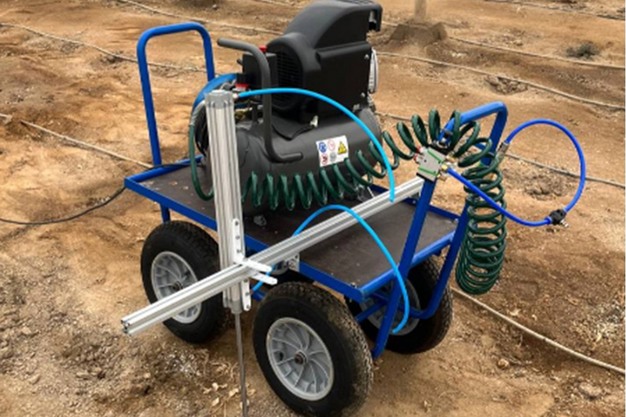 In het artikel Design and implementation of a pneumatic machine for ergonomic greenhouse planting, gepubliceerd in Smart Agricultural Technology, lichten ze het systeem toe. Het werkt met perslucht en drijft een zuiger in de grond, precies afgestemd op de kluit. Zo wordt een gat gemaakt dat perfect past bij de plant. Het apparaat is eenvoudig vast te klikken op een gebruikelijke kar en werkt handmatig. Je rijdt naar de plek, bedient de klep en de machine boort het gat, trekt zich terug en is klaar voor het volgende plantgat. Tot nu toe wordt een stalen pijp gebruikt om gaten handmatig te slaan.