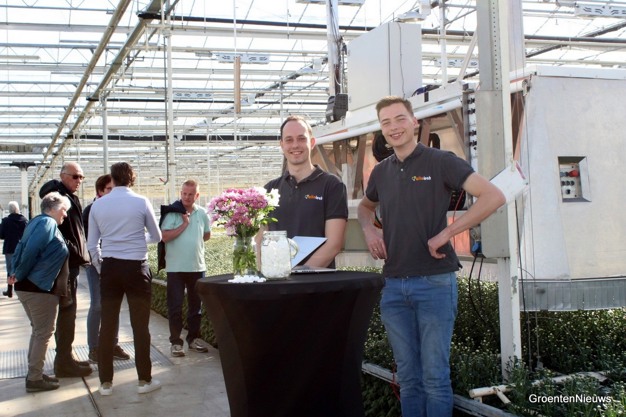 © Thijmen Tiersma | GroentenNieuws.nlDemonstratie van de knopkniprobot voor chrysanten van Wikotech bij Kwekerij de Wolvenhoek