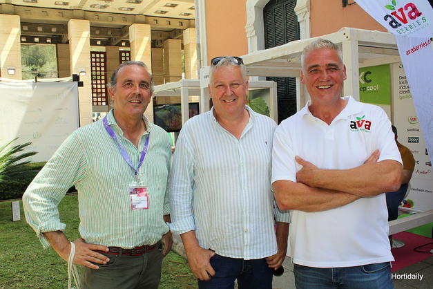 Luis Olmedo van Gat Fertilíquidos,met de Nederlandser Jan van Bergeijk (Plus Berries) en Johan Nooren ( Angus Soft Fruits)