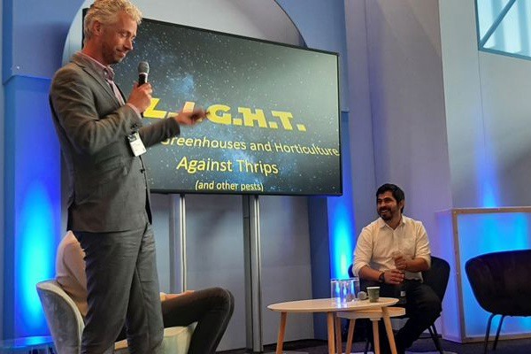 Kun je met lasertechnologie op een duurzame manier een plaag als trips bestrijden? Die vraag staat centraal in het onderzoeksproject L.I.G.H.T. (Lasers In Greenhouses and Horticulture Against Thrips and pests). Tijdens de tuinbouwvakbeurs GreenTech Amsterdam gaven Edwin Kroon (EKYW) en Estuardo Hernández Olesinski (WUR) op 11 juni een presentatie over het onderzoek.