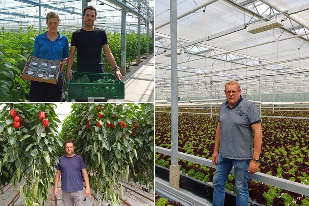 Papenburgse kastelers. Met de klok mee: Jantje Schoenmaker en Sebastian Bürger (mini- en snackkomkommers), Heinz-Jürgen Albers (teler van sla op hydrocultuur) en Björn Schubert (paprika's).