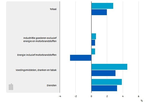 In de eurozone daalden met name de prijzen van energie, waar deze in Nederland stegen. Daarnaast was de prijsstijging bij voedingsmiddelen, dranken en tabak in juni op jaarbasis in Nederland groter dan gemiddeld in de eurozone.