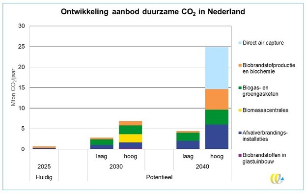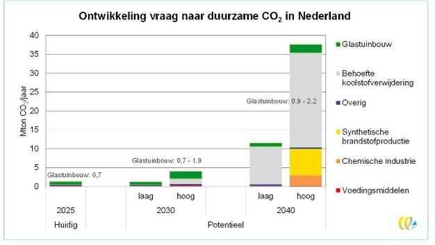 Rummenie: "Hoe groot die schaarste wordt, hangt voor een groot deel af van de inzet van de behoefte aan CO2 voor koolstofverwijdering, de eventuele vestiging van fabrieken voor synthetische brandstoffen of chemicaliën in Nederland en de productie van bio-energie, biobrandstoffen en chemicaliën in Nederland, waar CO2 bij vrijkomt. Ook efficiënte toepassing en besparing van CO2 is belangrijk om schaarste te beperken. De eerste twee ontwikkelingen zijn drivers voor de vraag naar CO2, terwijl de laatste vooral gevolgen heeft voor het aanbod van CO2."